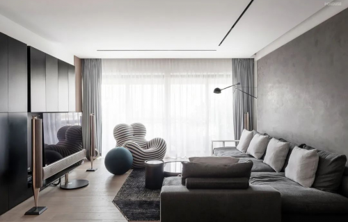 帶大家走進一個簡約中透露著慵懶氣息的豪宅空間。設計中,最有意思的是男女屋主性格碰撞產生的獨特靈感,男屋主從事互聯網行業,習慣用理性思維看待事物,女屋主的生活認知則充滿感性,喜歡經典唱片,做飯,旅游。將兩種不同風格結合在一